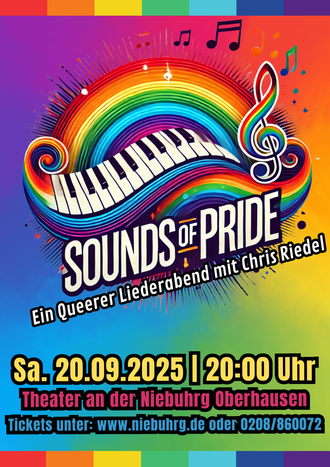Nach der erfolgreichen Uraufführung im Jahr 2023 feiert „Sounds of Pride“ nun sein Debüt im Theater an der Niebuhrg. Ob hetero, homo, bi, pan, schwul, lesbisch, trans oder anders – bei diesem Abend sind alle willkommen! Lassen Sie sich von Musik und Geschichten berühren, die bewegen und Mut machen, für eine Welt einzutreten, in der jeder Mensch seinen Platz findet.