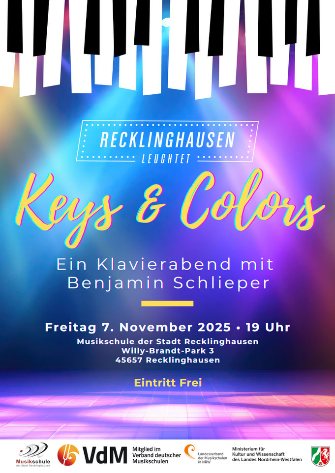 📍 Ort: Musikschule der Stadt Recklinghausen, Willy-Brandt-Park 3, 45657 Recklinghausen